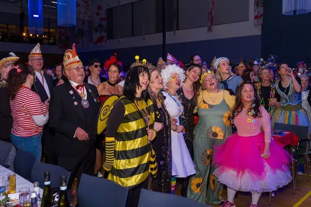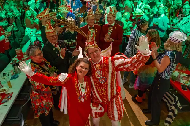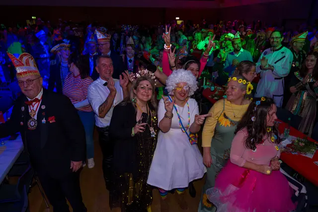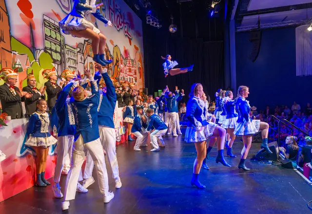 Die „Westerwaldsterne“ aus Uckerath zeigten sich in toller Form bei ihrem ersten Auftritt im neuen Jahr und boten eine akrobatische und tänzerische Show, die begeisterte. Jörg Runge, die „Klüngelköpp“, „Cat Balou“ und zum Finale die „Domstürmer“ waren weitere Stimmungsgaranten. Mit der guten Laune feierten die Jecken danach im Foyer der Meiersheide weiter.